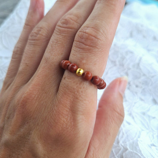 Bague Élastique Pierres de Jaspe Rouge "Énergie et Confiance"
