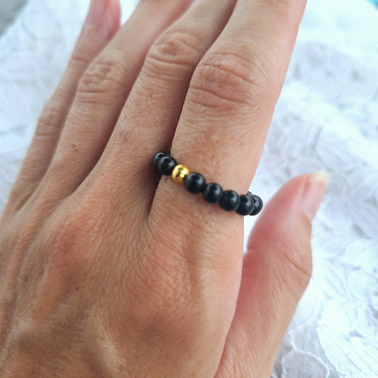 Bague Élastique Pierres d'Obsidienne "Ancrage et Protection"