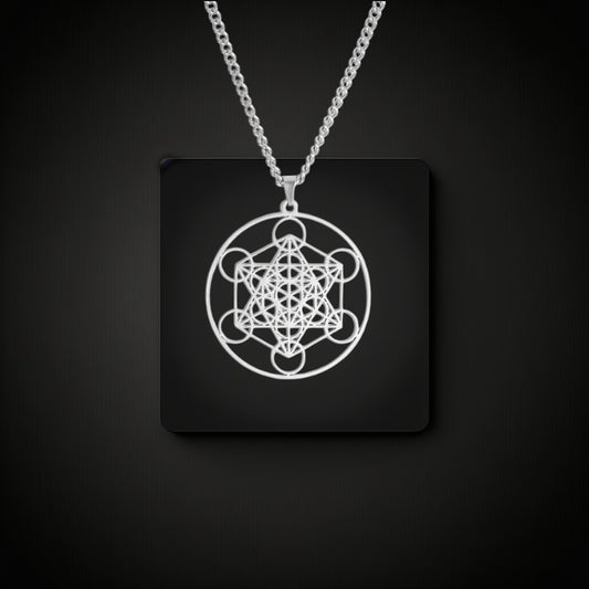 Collier Cube de Métatron – Protection & Harmonie – Acier Inoxydable Doré ou Argenté (2 cm ou 4 cm)