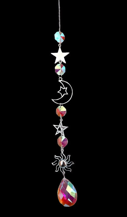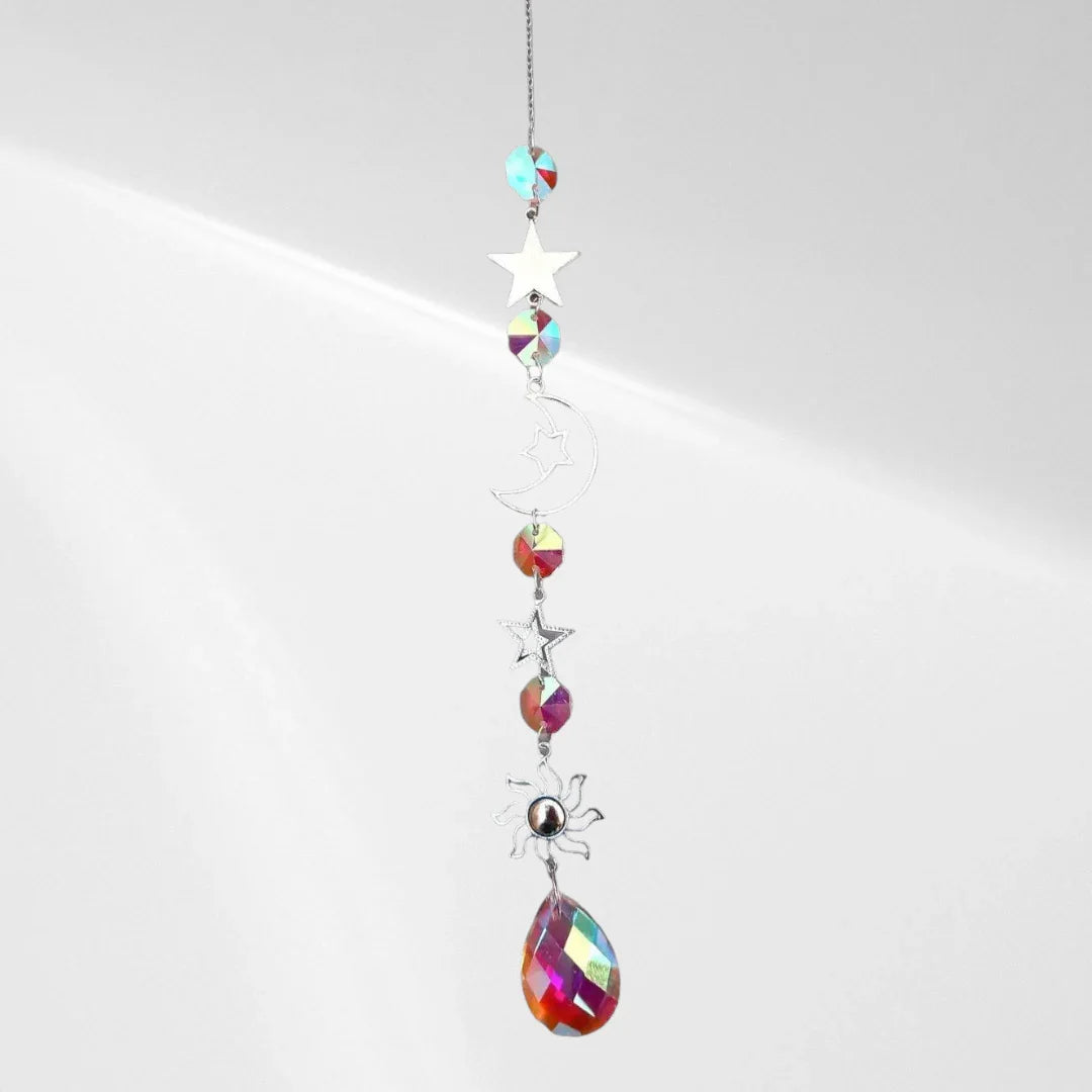 Apportez l’énergie du soleil, de la lune et des étoiles à votre décoration avec cet attrape-soleil argenté au design céleste. Suspendu près d’une fenêtre, il capte les rayons lumineux pour projeter de délicates ombres et des reflets scintillants dans votre intérieur, créant une ambiance à la fois douce et inspirante.