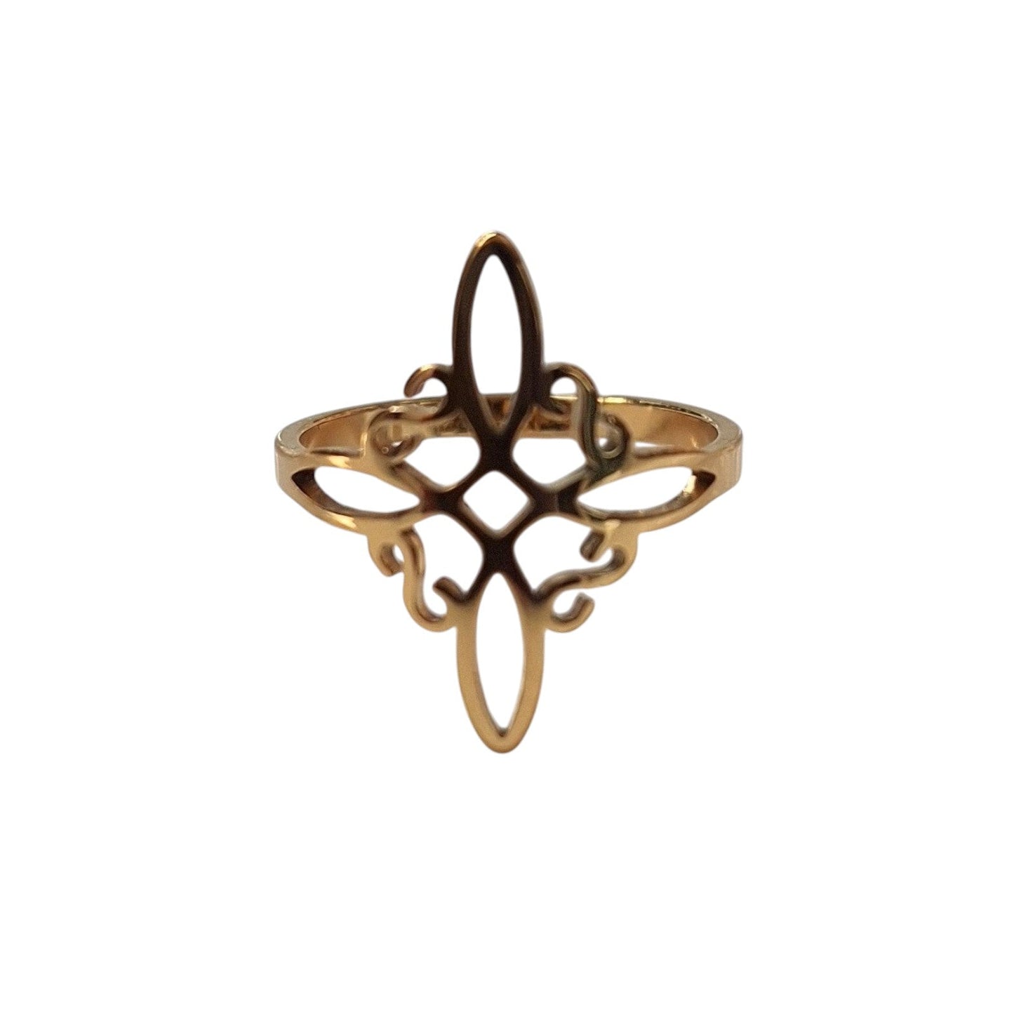 Inspirée des anciens symboles de sagesse et de protection, cette bague en acier inoxydable doré allie puissance spirituelle et élégance contemporaine. Son design raffiné met en valeur le Nœud de Sorcière celtique, un motif sacré représentant la continuité, la force et la protection intérieure.